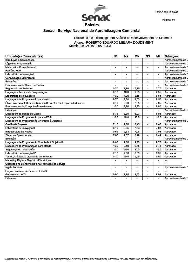 Ensino Superior em Análise e Desenvolvimento de Sistemas SENAC -
